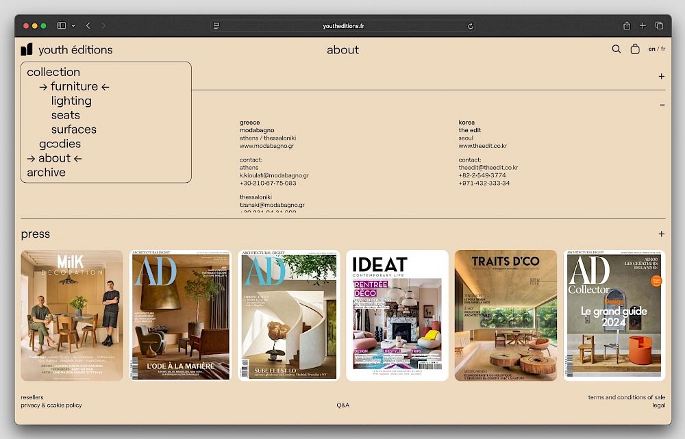 Design du site internet de la maison d'édition de design youth éditions