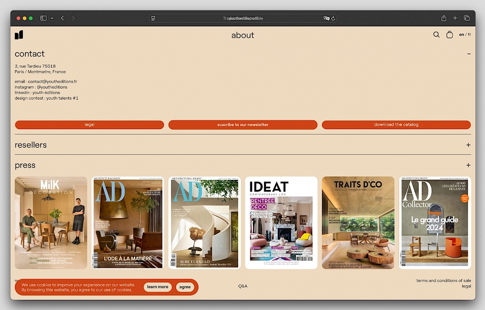 Design du site internet de la maison d'édition de design youth éditions
